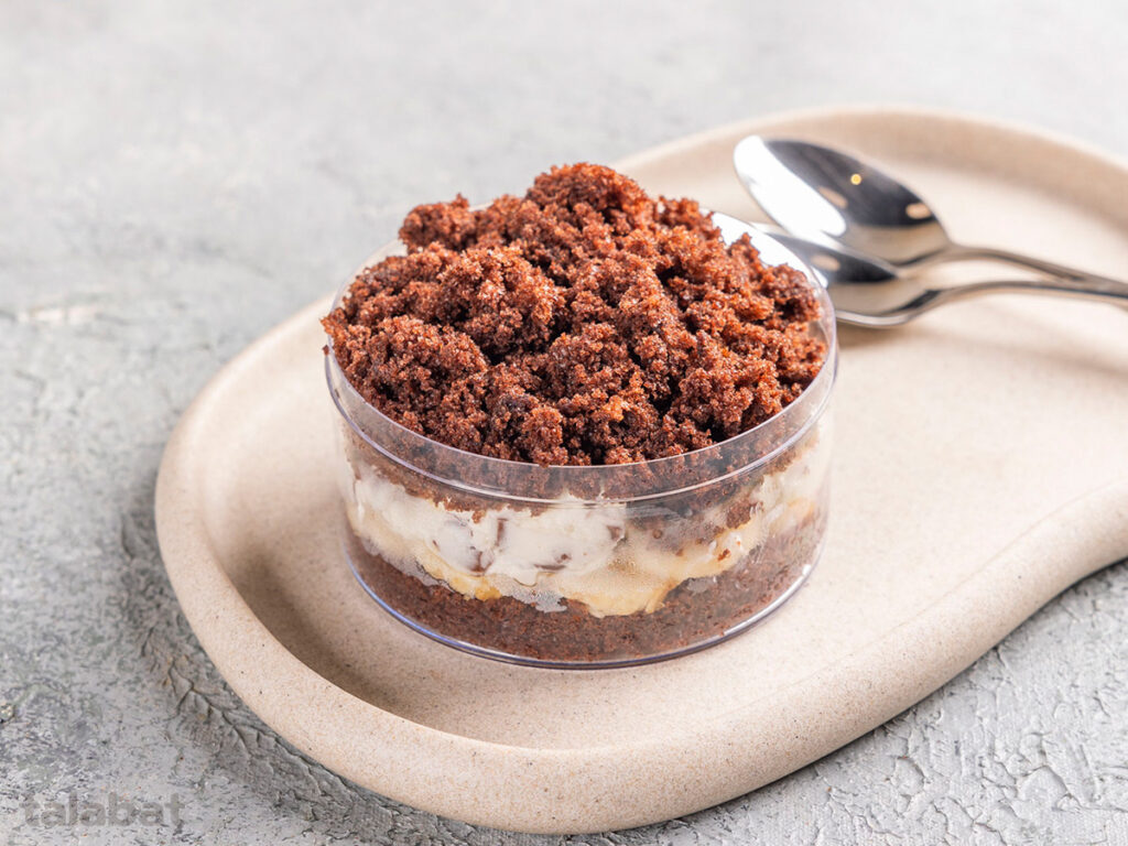 Chocolate cake soaked in coffee and light pudding