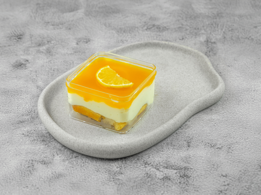 Vanila cake with cheese cream topped with homemade passion fruit sauce