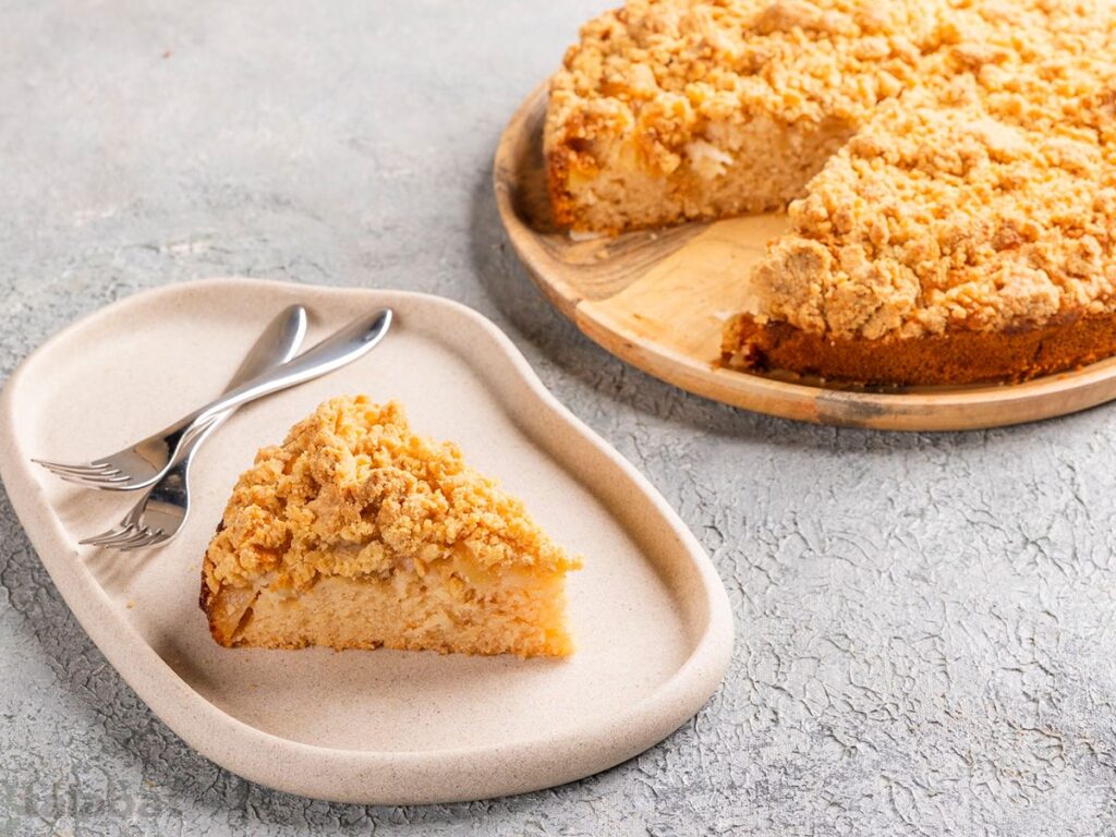 vegan apple crumble with cinnamon, soft apples and crunchy topping