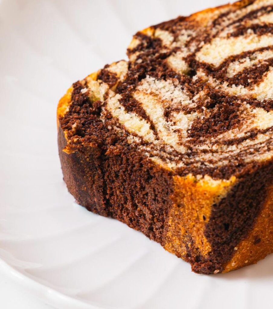moist cake swirled with chocolate and vanilla flavors