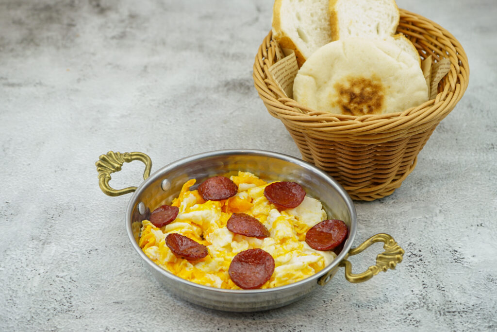 turkish garlic sausage with scrambled eggs | served with fresh bread